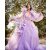 Lavender 3D Flower Bridal Party Dress with Long Puff Sleeves